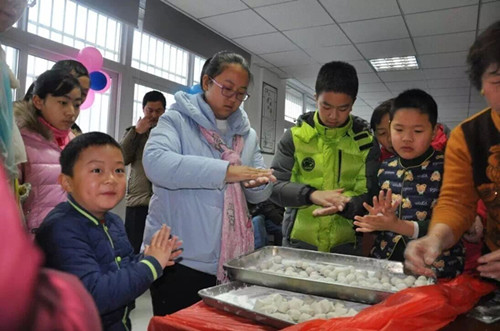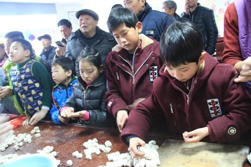 孩子們在社區(qū)爺爺奶奶手把手的指導(dǎo)下學(xué)搓湯圓。從生疏好奇到熟練自如,從他們的小手里滾出一個個滾圓的湯圓,也有的孩子邊學(xué)習(xí)邊實踐,搓出來的湯圓大的大、小的小,但大家認(rèn)為開心就好。