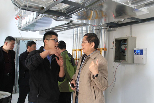 隨后,在三號樓信息中心,解說員向考察團成員介紹了通農(nóng)物流目前的建設(shè)和運營情況。在一號冷庫,冷鏈物流總經(jīng)理金林引導(dǎo)考察團成員參觀了100噸/天制冰車間、可調(diào)溫庫,介紹了通農(nóng)物流兩座4萬噸級大型冷庫結(jié)構(gòu)和用途。兩座4萬噸級冷庫是目前國內(nèi)較大的采用氟利昂R507變頻制冷的冷庫,采用代表國際領(lǐng)先水平的YORK壓縮機,其中一號冷庫于2017年3月開始降溫,5-6層高溫庫已于三月下旬交付冷鏈物流投入運營,將滿足華東地區(qū)對冷鏈物流業(yè)務(wù)的需求。冷庫采用先進的制冷設(shè)備、先進的經(jīng)營理念、先進的管理系統(tǒng)、動力系統(tǒng)雙路供電等,確保貨物安全,冷庫內(nèi)設(shè)高溫庫、低溫庫、變溫庫、復(fù)凍庫和超低溫(-60℃)庫。冷庫運用信息化管理系統(tǒng),實現(xiàn)全方位、多層次對庫溫、庫存、出貨、運輸、結(jié)算等各環(huán)節(jié)進行有效的管理和監(jiān)督。一層庫內(nèi)實現(xiàn)穿梭車取、存貨物,能滿足不同客戶的需求。每座冷庫配備8部五噸貨梯,16部液壓升降平臺,滿足理貨、出貨需求。