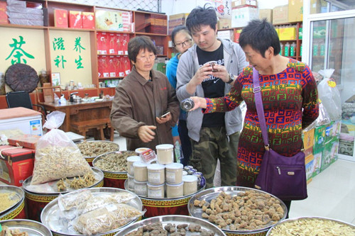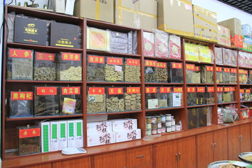 記者來到糧油區(qū)18號,這家名叫“王記廣福”的店鋪裝修精致,主營茶葉、各類滋補品,以批發(fā)給飯店、酒店為主。王老板熱情的向記者介紹:“安吉白茶、西湖龍井、黃山毛峰這類茶葉最受市民歡迎,價格均在上百到上千不等?!眲傔^“谷雨”,眼下正是滋補的好時節(jié)?!啊摺嗌馘X一斤?我買回去給婆婆補補?!笔忻駨埮吭儐栔鵁豳u中的“三七”價格。眾所周知,“三七”有通經(jīng)活血,預防各類心腦血管疾病的功效,目前價格在380元-580元/斤不等。除此之外,好幾種補品都打著特價:黃芪25元/斤,西洋參0.8元/克,滋補品天山雪蓮僅售35元/朵,市民多買回家泡酒喝。