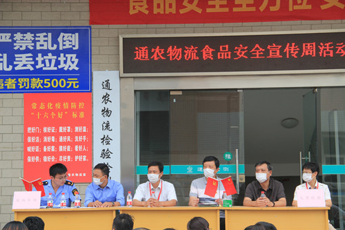 為普及食品安全有關(guān)法律法規(guī),加強(qiáng)食品安全監(jiān)管,9月25日下午,通農(nóng)物流舉辦了2020年食品安全宣傳周啟動儀式,觀音山市場監(jiān)督管理局綜合科科長潘韶忠、通農(nóng)物流副總經(jīng)理姜浩、邵飛參加活動。