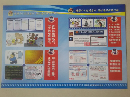 為迎接“雙節(jié)”帶來(lái)的重大挑戰(zhàn),安保部全體員工在思想上高度重視、行動(dòng)上高度自覺、作風(fēng)上高度嚴(yán)謹(jǐn),積極做好各項(xiàng)準(zhǔn)備工作。節(jié)前,安保部深入各交易區(qū)發(fā)放“增強(qiáng)個(gè)人防范意識(shí)謹(jǐn)防通訊網(wǎng)絡(luò)詐騙”和“防范電信網(wǎng)絡(luò)詐騙”等警示教育宣傳單,提醒廣大經(jīng)營(yíng)戶和客戶加強(qiáng)個(gè)人安全防范意識(shí),防止上當(dāng)受騙。