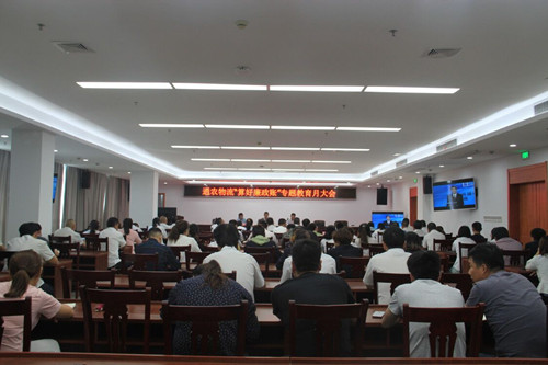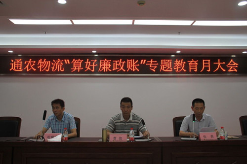 為貫徹落實十八屆中央紀委七次全會精神,強化黨內(nèi)監(jiān)督,規(guī)范黨內(nèi)民主,不斷強化以通農(nóng)物流黨員干部管黨治黨的政治責任,增強全體黨員領導干部遵紀守紀的意識。根據(jù)集團公司的統(tǒng)一部署和要求,結合通農(nóng)物流實際,9月28日下午,通農(nóng)物流在綜合展銷樓四樓會議室召開“算好廉政賬”專題教育月大會,交易區(qū)正副經(jīng)理、經(jīng)理助理、各職能部門副科長(含)以上管理干部及全體黨員共77人參加了會議。會議由總經(jīng)理助理、市場部總經(jīng)理張勇主持。