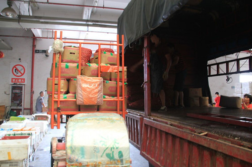 36歲的鹽城人楊毅和他老婆在交易區(qū)賣菜,主要經(jīng)營(yíng)全國(guó)各地的季節(jié)性直發(fā)菜品。分為北菜和南菜。北菜主要從內(nèi)蒙古張北和甘肅蘭州發(fā)至市場(chǎng)。南菜主要從云南昆明發(fā)至市場(chǎng)。他告訴記者今年菜價(jià)總體不高,比往年低了很多。由于外地天氣惡劣,雨水較多,直發(fā)蔬菜在運(yùn)輸過(guò)程中出現(xiàn)的損耗較多,尤其西紅柿、辣椒這種不易存放的蔬菜損耗最大。由于市場(chǎng)進(jìn)一步擴(kuò)大直發(fā)客菜區(qū),楊毅在通農(nóng)物流冷庫(kù)房囤積460噸北菜和南菜,讓市民能購(gòu)買到價(jià)廉物美的新鮮蔬菜。