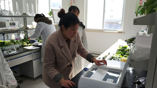 比賽過程中,通農(nóng)物流檢測中心的快檢人員張云、陳艷容操作流暢、手法熟練、臺賬記錄清晰明確,整個流程穩(wěn)中求快。在一小時中,兩位快檢員使用普贊PZ-NC農(nóng)殘速檢儀各檢測農(nóng)產(chǎn)品66批次 ,并列第一。達園、智銳達快檢員使用智銳達多參數(shù)速檢儀、達元DY3500速檢儀,各檢測農(nóng)產(chǎn)品30批次。