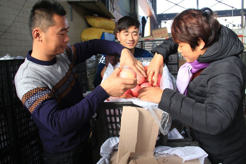天氣漸漸寒冷,應(yīng)季水果大量上市。每天凌晨天不亮,一輛輛滿載水果的卡車就陸續(xù)駛?cè)胪ㄞr(nóng)物流水果區(qū),呈現(xiàn)購銷兩旺的景象。今天上午十點(diǎn),記者來到交易現(xiàn)場(chǎng)時(shí),許多水果攤位仍處于熱銷狀態(tài)。蘋果、蜜柚、桔子是每年冬季的水果“三寶”,占據(jù)了水果市場(chǎng)銷售的半壁江山。