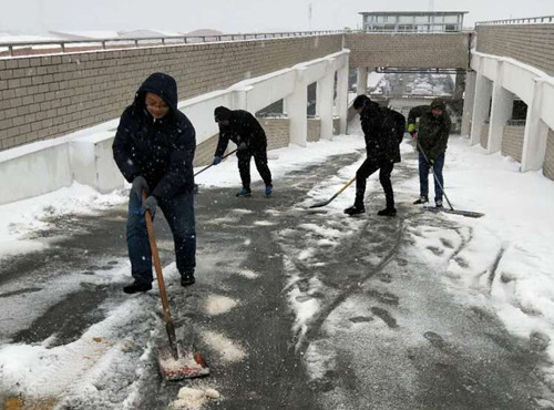 領(lǐng)導(dǎo)帶頭對(duì)道路及坡道上進(jìn)行鏟雪、撒鹽、除冰清掃工作,提醒每位駕駛員做好安全防護(hù)工作,最大限度的減少因冰雪天氣對(duì)道路安全帶來(lái)的不便和影響。積極應(yīng)對(duì)冰雪天氣,自理門前冰雪,解決防寒防凍,確保冬季生產(chǎn)安全,努力營(yíng)造一個(gè)安全有序的運(yùn)輸環(huán)境。(配送中心 嚴(yán)勻蔓)