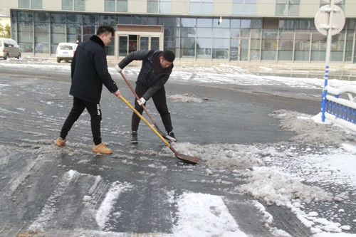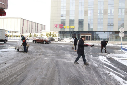 1月25日大雪過后,26日早晨道路結(jié)冰,來往市場的人流量較大。為保障前來市場采購年貨的消費(fèi)者、進(jìn)貨商及在市場經(jīng)營的商戶的出行安全,干貨區(qū)安全秩序管理人員及現(xiàn)場員工在經(jīng)理助理范一凡的帶領(lǐng)下,不畏嚴(yán)寒,分片負(fù)責(zé),在5、6、7號大廳中間及兩側(cè)主干道上奮力推雪、鏟雪、掃雪。在所有人員齊心協(xié)力的共同努力下,經(jīng)過了2個多小時,主干道等重要路口的積雪被掃除,減少了意外事故的發(fā)生。(干貨部 吳珍鳳)