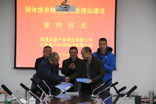 隨著通農(nóng)物流經(jīng)營交易規(guī)模與范圍的逐步擴(kuò)大,市場(chǎng)內(nèi)各類垃圾產(chǎn)生量也逐漸增多,為進(jìn)一步優(yōu)化市場(chǎng)環(huán)境,通農(nóng)物流在2017年年底就將垃圾處理站建設(shè)納入計(jì)劃,今年3月6日,在通農(nóng)物流展銷樓5樓會(huì)議室,南通農(nóng)副產(chǎn)品物流有限公司副總經(jīng)理闞君成與江蘇嘉力環(huán)保有限公司總經(jīng)理?xiàng)钛复砗献麟p方正式簽署了“固體廢棄物無害化處理站建設(shè)”的合作協(xié)議。崇川區(qū)區(qū)委常委張祖春、南京工業(yè)大學(xué)教授趙龍章和通農(nóng)物流總經(jīng)理曹俊等相關(guān)領(lǐng)導(dǎo)見證了此次簽約儀式。
