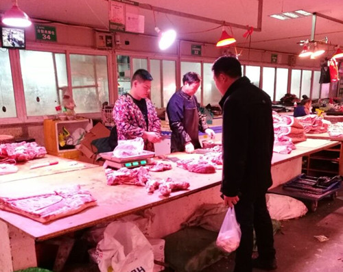 近期買菜的市民可能會(huì)發(fā)現(xiàn),豬肉比年前便宜不少,原本12元/斤左右的豬肉現(xiàn)在已跌破9元大關(guān),跌幅近三成。在通農(nóng)物流豬肉區(qū),每個(gè)分割肉攤位上都擺放著新鮮的豬肉和排骨,有市民正在選購(gòu)。經(jīng)營(yíng)戶董老板介紹到:現(xiàn)在豬肉行情不好,很多市民過(guò)年大魚(yú)大肉吃的還沒(méi)有緩過(guò)勁兒來(lái),豬肉供應(yīng)充足,但消費(fèi)終端需求不旺,導(dǎo)致年后豬肉價(jià)格直線跳水。本周腿肉、夾心肉8-9元/斤,五花肉10元/斤,仔排20元/斤,豬腳12元/斤,夾心、腿肉、豬腳比年前便宜了3元/斤,五花肉、仔排比年前便宜了4元/斤,雖然肉價(jià)下來(lái)了,但前來(lái)購(gòu)買的市民還是不多。