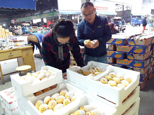 4月南方時令水果大量上市,口感最佳,價格下降得也快,從臺灣、海南、云南等地直銷過來的水仙芒、菠蘿、東方蜜等,與上周相比,價格呈現(xiàn)明顯回落態(tài)勢,均價低出二到三成。芒果作為應(yīng)季水果的主要代表,銷售勢頭迅猛,本周銷量較上周增長40%,尤其是臺灣水仙芒在眾多品種的芒果中銷量最大,日銷量20噸以上,均價8.5元/500克。云南的桑葚個大、多汁、味甜,深受中老年市民的青睞,在品嘗的同時勾起人們兒時的回憶。浙江的東方蜜果肉松脆、細(xì)膩,批發(fā)價4-4.5元/500克;遼寧的櫻桃是目前水果中的新貴,因量少而價高,目前在30-40元/500克,隨著天氣轉(zhuǎn)暖,口感會更好,價格將走低。