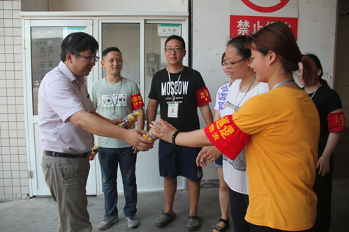 7月20日起,通農(nóng)物流總經(jīng)理室、工會(huì)領(lǐng)導(dǎo)每天分批到交易區(qū)慰問一線員工,公司食堂每日提供免費(fèi)綠豆湯供職工消暑降溫。(黨群辦 施婧婧)