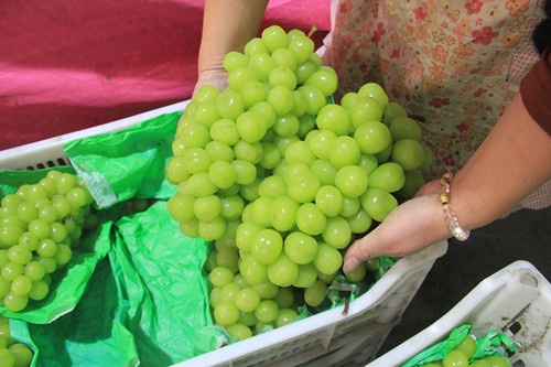 “本地陽光玫瑰葡萄還有半個多月就要下市,現(xiàn)在每日銷量仍然可觀”。在永升果業(yè)攤位前,記者看到七八位工作人員正在嫻熟地分揀包裝。“老板,給我六串”----“老板,給我來一箱”---購買市民絡(luò)繹不絕。陽光玫瑰葡萄口感獨特,甜中透著淡淡的玫瑰清香。在市區(qū)水果店零售每斤20多元,但這里按批發(fā)價格每斤僅15元。