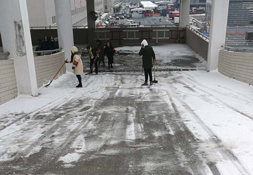 12月31日,全體現(xiàn)場(chǎng)員工一起出動(dòng)清理片區(qū)內(nèi)道路積雪。清雪期間干貨區(qū)員工擔(dān)當(dāng)掃雪主力,無(wú)一人有怨言,因?yàn)槲覀冃睦锩靼?,我們的工作宗旨就是“為?jīng)營(yíng)戶服務(wù)”。(干貨部 管文娟)