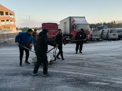 2018年的收尾,南通迎來(lái)了一場(chǎng)中雪,12月31日清早水產(chǎn)區(qū)婁新德科長(zhǎng)帶隊(duì),組織員工對(duì)水產(chǎn)區(qū)的過(guò)道、停車(chē)場(chǎng)進(jìn)行鏟雪、除冰、撒鹽工作。為防止經(jīng)營(yíng)戶(hù)和客戶(hù)滑倒,緊急開(kāi)會(huì)成立了“冬季四防”每日巡查小組,安排專(zhuān)門(mén)人員固定時(shí)間在通道撒鹽,每日加強(qiáng)在市場(chǎng)的安全巡查,密切關(guān)注氣候變化,早準(zhǔn)備、早防范,及時(shí)消除安全隱患,盡力維護(hù)消費(fèi)者的人身安全,也讓經(jīng)營(yíng)戶(hù)的利益不受損失。(水產(chǎn)部 沈露)