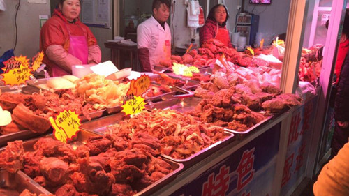 近年關,來通農物流豬肉區(qū)采購的市民越來越多,作為市政府扶持的民生工程,市食藥局對市場的食品安全也非常重視。