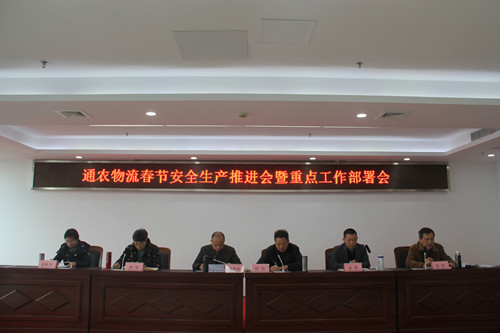 為迎接即將到來的新春佳節(jié),全面部署2019年通農(nóng)物流各項重點工作,推進公司春節(jié)期間各項工作有序、順利開展,1月23日下午,通農(nóng)物流領(lǐng)導班子組織召開了“春節(jié)安全生產(chǎn)推進會暨重點工作布置會”,公司各部門、各交易區(qū)負責人、管理人員和職工在內(nèi)共149人參會。會議由通農(nóng)物流副總經(jīng)理闞君成主持。
