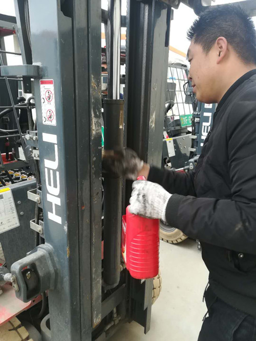 2月19日,合力叉車廠家對冷庫13臺電動(dòng)搬運(yùn)叉車進(jìn)行了季度保養(yǎng)。