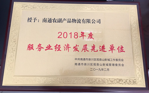 月,南通農(nóng)副產(chǎn)品物流有限公司獲得中共南通市崇川區(qū)觀音山新城工作委員會(huì)、南通市崇川區(qū)觀音山新城管理委員會(huì)頒發(fā)的“