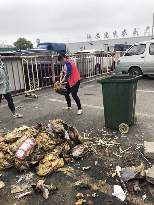 由于部分水果商戶隨意將削丟的水果皮、變質(zhì)水果等堆放在垃圾箱周邊甚至人行道上,給環(huán)衛(wèi)工人清掃保潔造成了很大的不便,保潔質(zhì)量得不到根本保證。近日,水果交易區(qū)工作人員對場內(nèi)衛(wèi)生死角一一排查,進行大掃除,將長期堆積的塑料袋、變質(zhì)水果及各種廢棄雜物等全部清掃出來,及時完成清運。