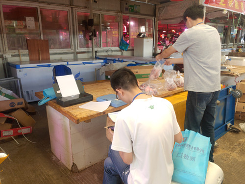 5月28日,市市場(chǎng)監(jiān)督管理局委托檢測(cè)機(jī)構(gòu)對(duì)通農(nóng)物流進(jìn)行抽檢。在水產(chǎn)區(qū)現(xiàn)場(chǎng)工作人員的帶領(lǐng)下,檢測(cè)人員抽檢了豬肉、牛肉、淡水魚(yú)、蝦4種水產(chǎn)品?,F(xiàn)場(chǎng)經(jīng)營(yíng)戶也積極配合,對(duì)食品安全工作非常認(rèn)同。