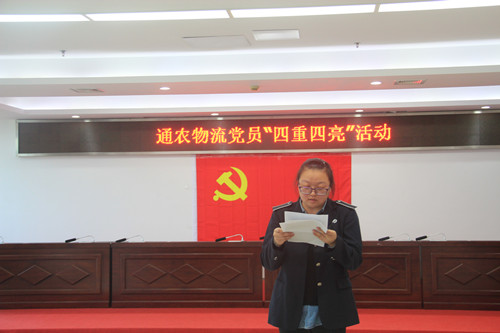 本次“四重四亮”活動是“不忘初心、牢記使命”主題教育的重要組成部分,通過“重讀入黨志愿、重溫入黨誓詞、重憶入黨經(jīng)歷、重問入黨初心”,要求“黨員亮身份、服務(wù)亮承諾、工作亮標(biāo)準(zhǔn)、擔(dān)當(dāng)亮作為”,進(jìn)一步激勵大家堅守初心使命、勇于擔(dān)當(dāng)作為,以更加飽滿的熱情為通農(nóng)物流高質(zhì)量發(fā)展做出新的更大的貢獻(xiàn)。(綜合部 居媛媛)