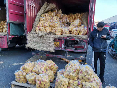 每天凌晨時(shí)分,一輛輛滿載著陜西洛川袋裝蘋果的貨車,陸陸續(xù)續(xù)地停在水果交易區(qū)的西北處等待銷售。洛川地處陜北黃土高原的核心地帶,土層深厚,質(zhì)地疏松,無(wú)霜期長(zhǎng),降雨適中,雨熱同季。夏無(wú)酷暑,冬少嚴(yán)寒,擁有蘋果生長(zhǎng)得天獨(dú)厚的自然優(yōu)勢(shì),是我國(guó)的一大蘋果主要產(chǎn)地。因其產(chǎn)出的蘋果品質(zhì)優(yōu)良,果形優(yōu)美,個(gè)大均勻,肉質(zhì)脆密,含糖量高,香甜可口,硬度適中,又耐貯藏而深受人們喜愛(ài)。