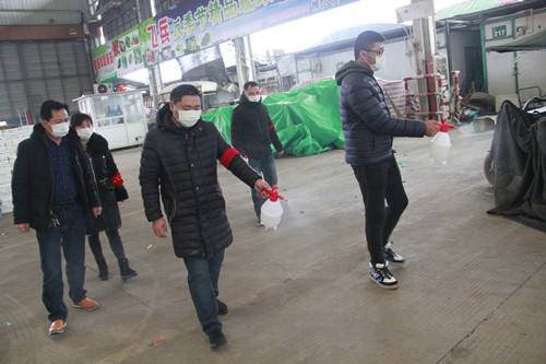 通農(nóng)物流蔬菜交易區(qū)春節(jié)期間新型冠狀病毒疫情防控形勢嚴(yán)峻,交易區(qū)經(jīng)理呂劍放棄春節(jié)休假時間連續(xù)召開五次管理人員緊急會議,傳達、布置、落實交易區(qū)內(nèi)疫情防控工作,對公司疫情防控會議要求在工作群實時發(fā)布。充分發(fā)揮黨員帶頭作用,堅持帶領(lǐng)廣大黨員干部職工在一線進行防控防疫,每天現(xiàn)場宣傳,嚴(yán)格要求進場商戶佩戴口罩,帶領(lǐng)員工進行場內(nèi)公共部位(大棚、大廳、公共廁所、電梯、中通道)等重點部位消毒。面對南門口進場車輛大的情況,抽調(diào)人員對每日進場商戶進行體溫測量及信息登記,日登記量在400輛車左右。對后場區(qū)域目前營業(yè)的近500戶經(jīng)營戶開展排查,親力親為,尤其是對轄區(qū)內(nèi)湖北籍、浙江籍經(jīng)營戶及小工,嚴(yán)格排查登記,嚴(yán)防嚴(yán)控疫區(qū)人員進入市場。張曉建、呂松貽、張云霞等干部職工更是奮戰(zhàn)在防控一線,從1月20日開始一直未休息。呂經(jīng)理關(guān)心關(guān)注蔬菜區(qū)全員健康以及自我防控,從思想上行動上關(guān)心員工,宣傳號召蔬菜部員工齊心協(xié)力做好新型冠狀病毒防控防疫工作。