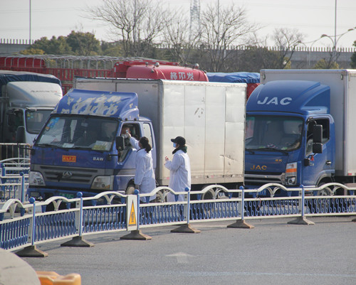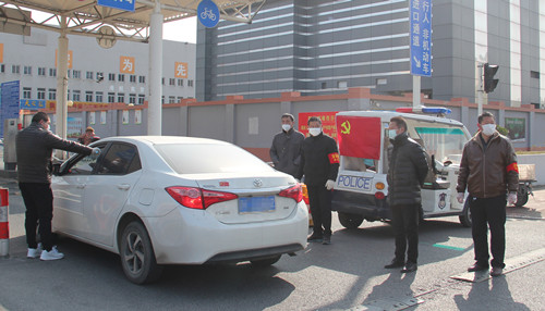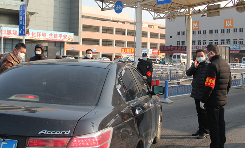徐總首先去了處于防疫一線的兩個(gè)閘道口,這里由安保部安排了人員依次為進(jìn)入市場(chǎng)的人測(cè)量體溫和檢查口罩佩戴情況,遇到外地牌照車輛一一登記在案,并設(shè)有醒目的指示標(biāo)牌和揚(yáng)聲器循環(huán)提醒進(jìn)場(chǎng)人員配合檢查。徐總強(qiáng)調(diào),現(xiàn)在是特殊時(shí)期,一定要逢車必查,逢人必檢。期間正好有一位來(lái)市場(chǎng)進(jìn)貨的車輛駕駛員對(duì)因?yàn)橐獪y(cè)量體溫導(dǎo)致進(jìn)場(chǎng)速度變慢表示不滿,徐總和安保人員一起向他耐心解釋,仔細(xì)勸解,最終他也表達(dá)了對(duì)我們市場(chǎng)工作人員工作的理解。