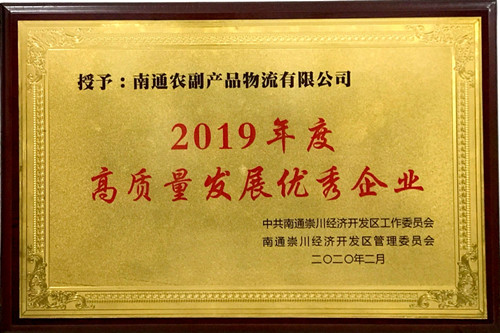 2020年2月,通農(nóng)物流獲評(píng)“崇川經(jīng)濟(jì)開發(fā)區(qū)2019年度高質(zhì)量發(fā)展優(yōu)秀企業(yè)”。(綜合部 吳穎)