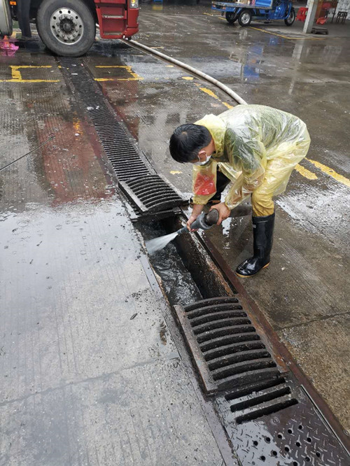針對(duì)此輪降雨,水果區(qū)領(lǐng)導(dǎo),提前部署,從容應(yīng)對(duì),交易區(qū)排水暢通,無(wú)積水。16日,水果交易區(qū)兩位經(jīng)理親自帶領(lǐng)管理人員對(duì)大棚中間及三號(hào)廳東側(cè)的排水溝進(jìn)行了疏通,及時(shí)清理管道內(nèi)的垃圾,對(duì)管道內(nèi)部進(jìn)行了沖洗疏通,對(duì)于疏通工具疏通不了的細(xì)小雜物,工作人員發(fā)揮不怕臟、不怕苦的精神,深入管道清理。