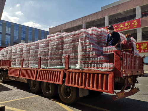 在干貨七號(hào)大廳西,王勇炒貨、海航食品、赟鑫休閑食品,這些主營水和飲料的大戶,從老板到小工,每個(gè)人都異常忙碌,各種進(jìn)貨車輛都在排隊(duì)等候裝車。據(jù)王勇炒貨王老板介紹,今年各種品牌水和飲料制品的價(jià)格和往年相比,基本沒有變化,農(nóng)夫山泉、怡寶、康師傅等這些價(jià)格親民的大眾化品牌依然是銷售主力。隨著市民的健康意識(shí)增強(qiáng),功能性飲料、含糖飲料的銷量占比有所下降。