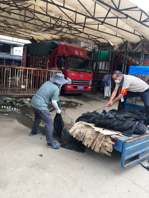 火熱8月,阻擋不了蔬菜部全體工作人員擼起袖子加油干的滿腔熱情,尤其是秩序科現(xiàn)場(chǎng)管理工作人員。大家對(duì)于各自區(qū)域的衛(wèi)生保潔高度重視,場(chǎng)內(nèi)臟亂現(xiàn)場(chǎng)及時(shí)親自動(dòng)手清理。面對(duì)臟棉被、草簾、木板、爛菜葉等各類垃圾,大家毫無(wú)畏難情緒,一呼百應(yīng),個(gè)個(gè)不怕臟、不怕累,只想著立即清理,創(chuàng)造出一個(gè)干凈衛(wèi)生的交易環(huán)境。同時(shí),秩序科對(duì)大棚內(nèi)經(jīng)營(yíng)戶們隨意懸掛的橫幅也進(jìn)行了集中整治清除,對(duì)經(jīng)營(yíng)戶們反復(fù)宣傳,一再?gòu)?qiáng)調(diào),此次創(chuàng)建全國(guó)文明城市的重要性,干凈整潔交易環(huán)境的重要性,大家積極參與配合的重要性。