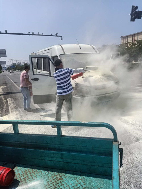 8月19日中午時分,通欣路與崇川路路口突遇一輛汽車起火,路經(jīng)此地的冷鏈部副經(jīng)理陸杰迅速拿起車載滅火器向著火的汽車沖去,及時將火勢控制。但因車載滅火器容量小,陸杰又緊急聯(lián)系冷鏈部保安迅速支援8只大型干粉滅火器,并在路人、保安的熱心幫助下,及時將火撲滅,未造成人員傷亡。