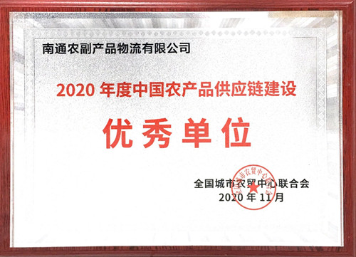 為加強(qiáng)農(nóng)產(chǎn)品流通各環(huán)節(jié)的協(xié)同創(chuàng)新,推動(dòng)疫情防控常態(tài)下中國農(nóng)產(chǎn)品供應(yīng)鏈智慧化建設(shè)發(fā)展,宣揚(yáng)和弘揚(yáng)為中國農(nóng)產(chǎn)品供應(yīng)鏈發(fā)展做出突出貢獻(xiàn)的單位和個(gè)人,2020年11月,在全國城市農(nóng)貿(mào)中心聯(lián)合會(huì)舉辦的“2020年度中國農(nóng)產(chǎn)品供應(yīng)鏈之星”表彰活動(dòng)中,南通農(nóng)副產(chǎn)品物流有限公司榮獲“2020年度中國農(nóng)產(chǎn)品供應(yīng)鏈建設(shè)優(yōu)秀單位”。 (經(jīng)營部 洪聰慧)