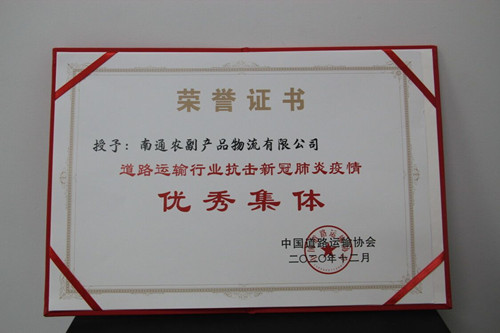 2020年12月14日至16日,中國道路運(yùn)輸協(xié)會(huì)在京召開第六屆二次理事大會(huì),對(duì)2020年中國道路運(yùn)輸抗疫保通、復(fù)工復(fù)產(chǎn)先進(jìn)集體和個(gè)人進(jìn)行通報(bào)表揚(yáng)。南通農(nóng)副產(chǎn)品物流有限公司被授予“道路運(yùn)輸行業(yè)抗擊新冠肺炎疫情優(yōu)秀集體”榮譽(yù)稱號(hào)。黨總支書記、總經(jīng)理徐徑被評(píng)為“道路運(yùn)輸行業(yè)抗擊新冠肺炎疫情優(yōu)秀個(gè)人”。