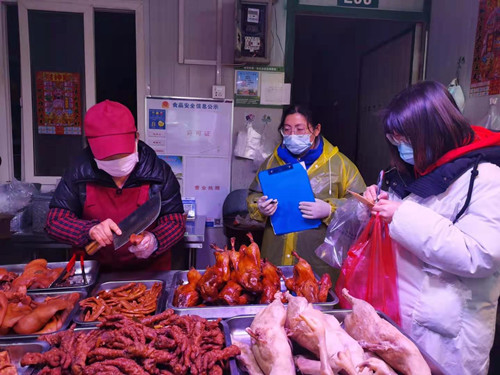 根據(jù)公司相關要求,春節(jié)前期水產(chǎn)交易區(qū)將對重點品種(熟食、魚、蝦)加大抽檢力度、增加抽檢頻率,確保水產(chǎn)(肉類)食品銷售安全。1月27日,水產(chǎn)區(qū)食品安全員和現(xiàn)場管理人陪同食安部檢測人員對熟食區(qū)進行全面抽檢,針對熟食區(qū)牛雜、牛腸、牛肚、牛頭肉、豬頭肉這五種亞硝酸鹽容易超標的重點品種進行每戶必抽,其他熟食制品隨機抽檢,增加品種和頻率,確保熟食抽檢無死角全覆蓋。