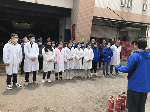 最后蔬菜部呂經理上臺進行了總結,表揚了大家對安全生產的良好意識,對消防安全常識有了進一步了解。肯定了大家對應對突發(fā)事件的應急能力、有效組織和迅速反應。救援小組能有效組織員工疏散、警戒和投入滅火行動中。美中不足的是,員工在卷水帶和使用滅火器時,操作還不熟練,動作還不標準,還需多加練習。