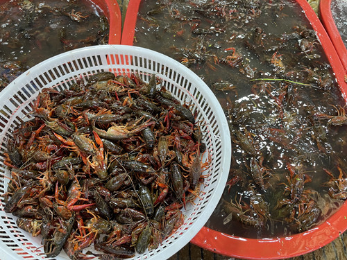 如果每個(gè)季節(jié)都有它的招牌美食的話,那么這個(gè)時(shí)節(jié)的美味必然是小龍蝦,只有它才能在這炎炎夏日撩撥起久經(jīng)考驗(yàn)的食客的味覺(jué)神經(jīng)。水產(chǎn)肉類交易區(qū)里,小龍蝦的銷量穩(wěn)步提升,老百姓們開(kāi)開(kāi)心心買上當(dāng)季美食,回家各有各的吃法:清蒸小龍蝦、蒜泥小龍蝦、冰鎮(zhèn)小龍蝦、十三香小龍蝦……2021年的第一頓小龍蝦,你吃了嗎?