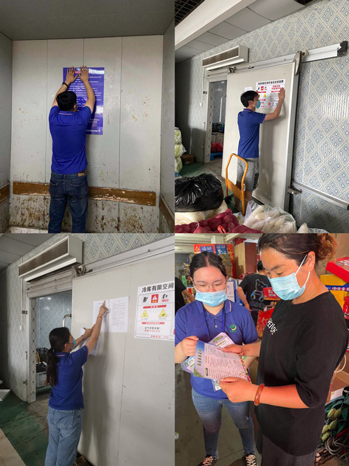 在行動(dòng)中,各片區(qū)責(zé)任人除發(fā)放宣傳單和告知牌外,還對(duì)宣傳單和告知牌的內(nèi)容逐條進(jìn)行了詳細(xì)的講解和宣傳:1、在食品安全方面,提醒商戶合法經(jīng)營(yíng),在交易過(guò)程中不得缺斤少兩,銷售過(guò)期食品、三無(wú)產(chǎn)品等,散裝食品必須加蓋,同時(shí)按要求保存好相關(guān)的溯源票據(jù),便于追溯;2、在消防安全方面,進(jìn)入冷庫(kù)時(shí),必須做好相應(yīng)的防護(hù)措施,保持出入口通暢無(wú)阻礙,嚴(yán)格按照操作章程進(jìn)行;告誡商戶在電梯運(yùn)行時(shí)不得拍打轎門(mén),裝卸貨物嚴(yán)禁超負(fù)荷運(yùn)載,電梯出現(xiàn)故障的第一時(shí)間與維保人員及時(shí)聯(lián)系,避免影響后續(xù)使用。