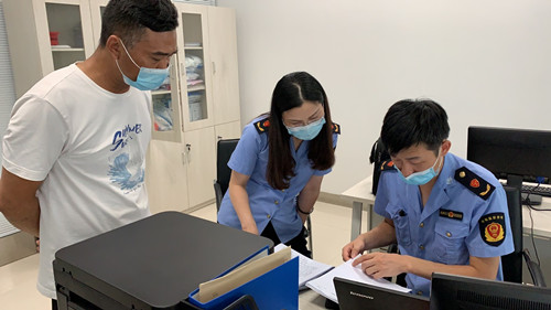 此次演練模擬了市場監(jiān)督管理局檢查人員日常檢查過程中發(fā)現(xiàn)通農物流水產區(qū)某經營戶購進的一批南美對蝦核酸檢測為陽性。隨后立即啟動進口冷鏈食品應急處置演練預案,對涉及的經營單位開展調查,對經營區(qū)域進行管控,對包括經營戶在內的所有密切接觸者進行跟蹤管理,全力追根溯源,控制事態(tài)蔓延和發(fā)展。另外,還對該經營戶存放進口冷鏈食品的第三方冷庫進行了檢查,分別查看了該批次食品是否在江蘇冷鏈平臺規(guī)范登記,冷庫是否按要求分隔存放,進銷貨情況是否與臺賬一致等。各參演部門按照職責分工有序開展處置、溯源、流調、上報等相關工作。