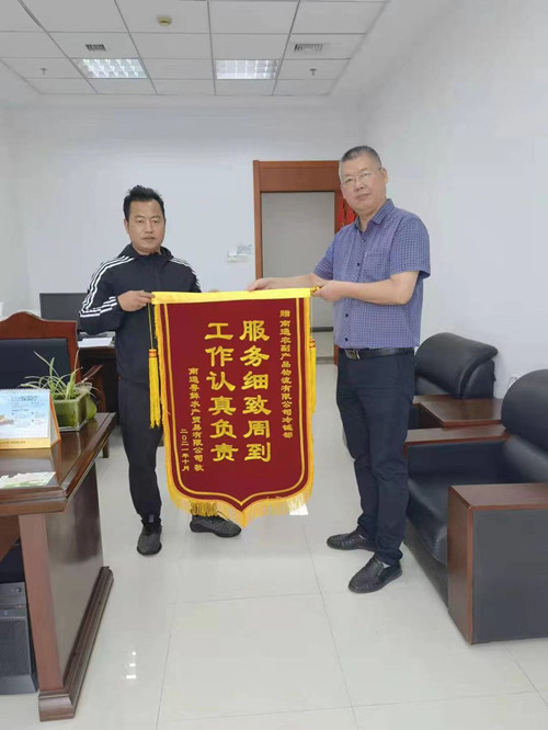 12日上午,冷鏈部辦公室內(nèi)傳來(lái)陣陣爽朗的笑聲,商戶詹秋明先生和冷鏈部經(jīng)理袁東雙手緊緊握在一起,詹秋明先生對(duì)冷鏈部干部職工認(rèn)真負(fù)責(zé)的工作態(tài)度,熱情周到的服務(wù)給予了肯定并表示了感謝,隨后雙手奉上一面寫著“工作認(rèn)真負(fù)責(zé),服務(wù)細(xì)致周到”的錦旗,表示今后會(huì)一如既往地配合冷鏈部的工作,實(shí)現(xiàn)雙贏。