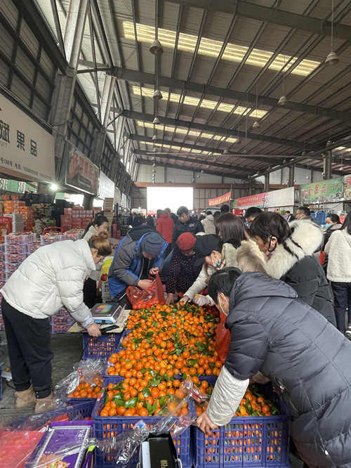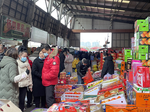 春節(jié)臨近,家家戶戶都著手準(zhǔn)備年貨,市場上人來人往,購買水果的市民絡(luò)繹不絕。