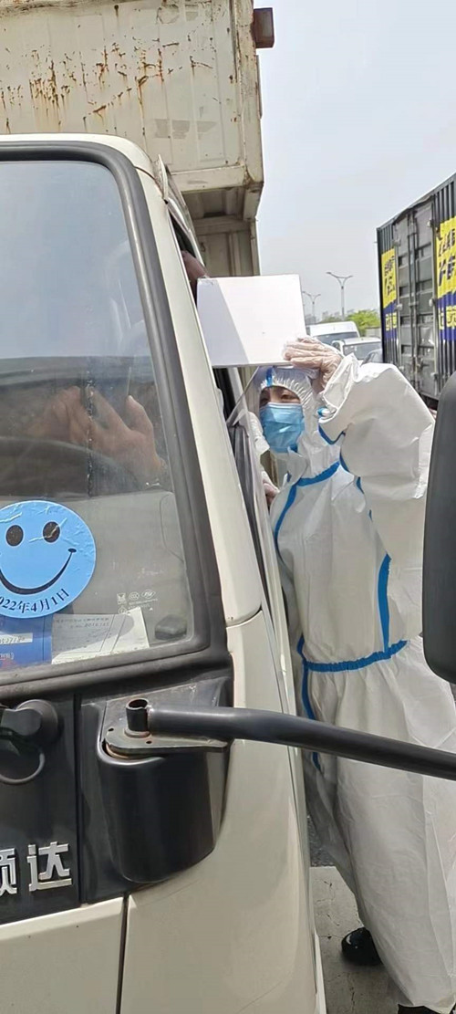 疫情就是命令,防控就是責(zé)任。為打贏疫情防控攻堅(jiān)戰(zhàn),配送直營(yíng)部根據(jù)公司的要求安排工作人員在南門做好支援工作。疫情防控工作是辛苦的,每日到崗前認(rèn)真做好防護(hù)是她們一天工作的開始。面對(duì)每天經(jīng)過面前的車流人流,她們需要認(rèn)真負(fù)責(zé)查驗(yàn)前往市場(chǎng)車輛人員的健康碼、行程碼及24小時(shí)核酸檢測(cè)報(bào)告,要做到不漏一人,不漏一項(xiàng)。在這特殊時(shí)期,疫情防控是首要任務(wù),工作人員需要對(duì)各項(xiàng)日常工作進(jìn)行時(shí)間上的安排,在做好南門支援工作的同時(shí)日常工作也不能松懈。