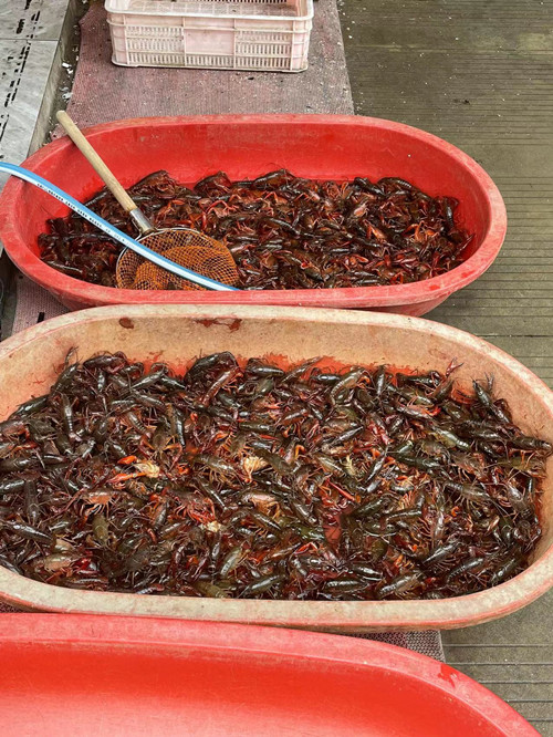 水產(chǎn)區(qū)的小龍蝦產(chǎn)地以湖北潛江為主。雖然受疫情影響,貨物運(yùn)輸成本增加(可能較去年增加了一倍以上),今年小龍蝦總體進(jìn)價(jià)要比去年貴一些,但是小龍蝦還是屬于熱銷(xiāo)貨,是夏季美食的首選,基本每家水產(chǎn)品經(jīng)營(yíng)戶(hù)都有龍蝦賣(mài),隨著疫情好轉(zhuǎn),將會(huì)有越來(lái)越多的老百姓前來(lái)選購(gòu)。(水產(chǎn)區(qū) 陳旭鵬)