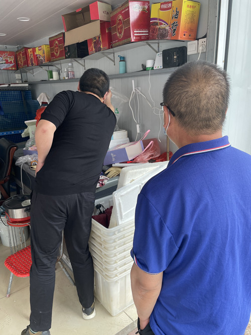 目前疫情防控仍然是工作重心,但是日常各項安全工作仍然不能放松。5月19日下午,水產(chǎn)肉類交易區(qū)經(jīng)理室布置,主管范淵牽頭,帶領(lǐng)安全管理員李祥、見習(xí)辦事員葛曙光、班組長章偉、陳旭鵬進行了一次安全大檢查,針對交易區(qū)所有大廳店面房、大棚攤位、自搭建攤位的消防安全、用電安全、食品安全,仔細(xì)排查,一旦發(fā)現(xiàn)隱患能整改的立即整改,不能整改的限期整改。