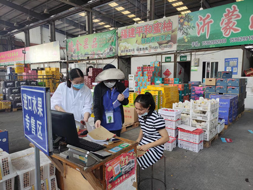 為保障群眾節(jié)日期間食品安全,將食品安全“守底線、查隱患、保安全”工作落到實(shí)處,連日來,通農(nóng)物流食安部多次組織開展中秋節(jié)食品安全專項(xiàng)檢查。按照食品安全“守查?!睂m?xiàng)行動(dòng)要求,結(jié)合群眾節(jié)日消費(fèi)特點(diǎn),堅(jiān)持以月餅、水果、乳制品、肉類等為重點(diǎn)檢查對(duì)象,檢查商家進(jìn)貨過程中索證索票是否齊全,產(chǎn)品標(biāo)識(shí)標(biāo)簽是否規(guī)范,是否存在過度包裝,是否存在銷售“三無”及過期食品等違法行為。以水果區(qū)和干貨區(qū)為重點(diǎn)區(qū)域,食安部工作人員著重檢查進(jìn)口水果四證和進(jìn)銷貨記錄,向食品經(jīng)營戶宣傳《食品安全法》,進(jìn)一步規(guī)范食品經(jīng)營者日常經(jīng)營行為,提高其食品安全責(zé)任意識(shí)。針對(duì)個(gè)別存在不足的經(jīng)營行為,當(dāng)場進(jìn)行指導(dǎo)整改,壓實(shí)食品經(jīng)營者主體責(zé)任。