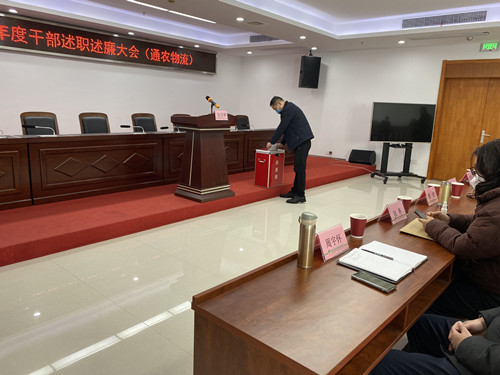 通農(nóng)物流黨總支書記、董事長闞君成首先代表通農(nóng)物流班子就班子建設(shè)、黨組織抓黨建及個人情況進(jìn)行了述職述廉。隨后與會人員填寫了領(lǐng)導(dǎo)班子民主測評表,對通農(nóng)物流領(lǐng)導(dǎo)班子2022年一年來的工作進(jìn)行了客觀公正的測評。