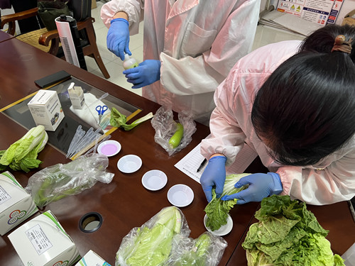 6月30日下午,通農(nóng)物流食品安全宣傳周活動(dòng)正式啟動(dòng)。在“你點(diǎn)我檢”活動(dòng)現(xiàn)場(chǎng),食安部工作人員一邊給前來(lái)參加活動(dòng)的人員發(fā)放食品安全宣傳單,一邊普及預(yù)防食物中毒和減少果蔬農(nóng)殘等的基本方法?!跋募巨r(nóng)藥殘留嚴(yán)重的蔬菜有哪些?”“果蔬買回去要怎么處理才能有效減少農(nóng)藥殘留?”不少市民帶著大白菜、西紅柿、土豆、芹菜等前來(lái)檢測(cè),通農(nóng)物流檢測(cè)員王倩、顧明明詳細(xì)展示農(nóng)產(chǎn)品檢測(cè)流程,并耐心解答市民疑問(wèn)?!澳泓c(diǎn)我檢”活動(dòng)不僅能讓消費(fèi)者和經(jīng)營(yíng)戶近距離觀看農(nóng)產(chǎn)品檢測(cè)過(guò)程,更進(jìn)一步拉近了經(jīng)營(yíng)戶、消費(fèi)者與農(nóng)產(chǎn)品檢測(cè)的距離,進(jìn)一步提高了市民的食品安全防范意識(shí)。崇川區(qū)市場(chǎng)監(jiān)督管理局崇開(kāi)分局也在活動(dòng)現(xiàn)場(chǎng)開(kāi)設(shè)了現(xiàn)場(chǎng)咨詢窗口,耐心解答市民疑問(wèn)。