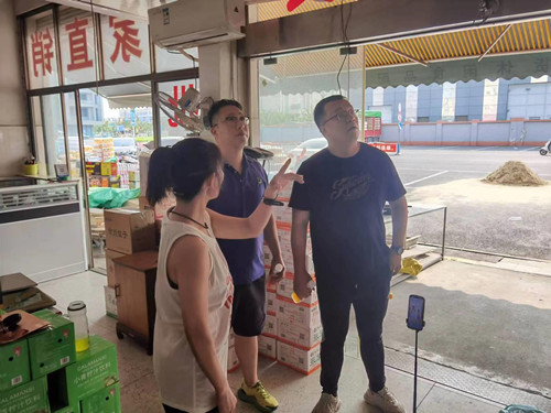 今年是通農(nóng)物流“服務(wù)提升年”,為切實(shí)優(yōu)化交易區(qū)服務(wù)管理,7月25日,干貨配送區(qū)副經(jīng)理胡建博帶隊(duì)對(duì)經(jīng)營戶進(jìn)行挨家挨戶走訪,詢問商戶有無實(shí)際困難,在生產(chǎn)經(jīng)營方面需要提供哪些幫助。
