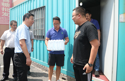 “天氣熱,大家都辛苦了,工作時要合理安排作息時間,注意防暑降溫?!毙ざ贿吔o一線工作人員發(fā)放慰問物資,一邊叮囑要做好防暑保護,注意勞逸結(jié)合,要求通農(nóng)物流確保高溫下的一線干部職工能夠舒心工作,清涼度夏。